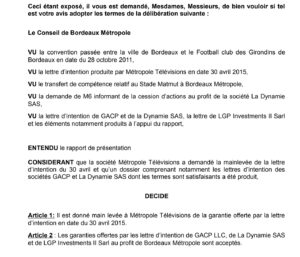 Dans le cadre de la vente du club des Girondins de Bordeaux, la presse nous apprend que le repreneur américain, faute d’avoir pu réunir les fonds à temps, a repoussé la transaction de 15 jours. Ce scénario nous a invité à relire la délibération votée par les élus de la Métropole et une faille juridique de taille risque de donner quelques sueurs froides à Alain Juppé.