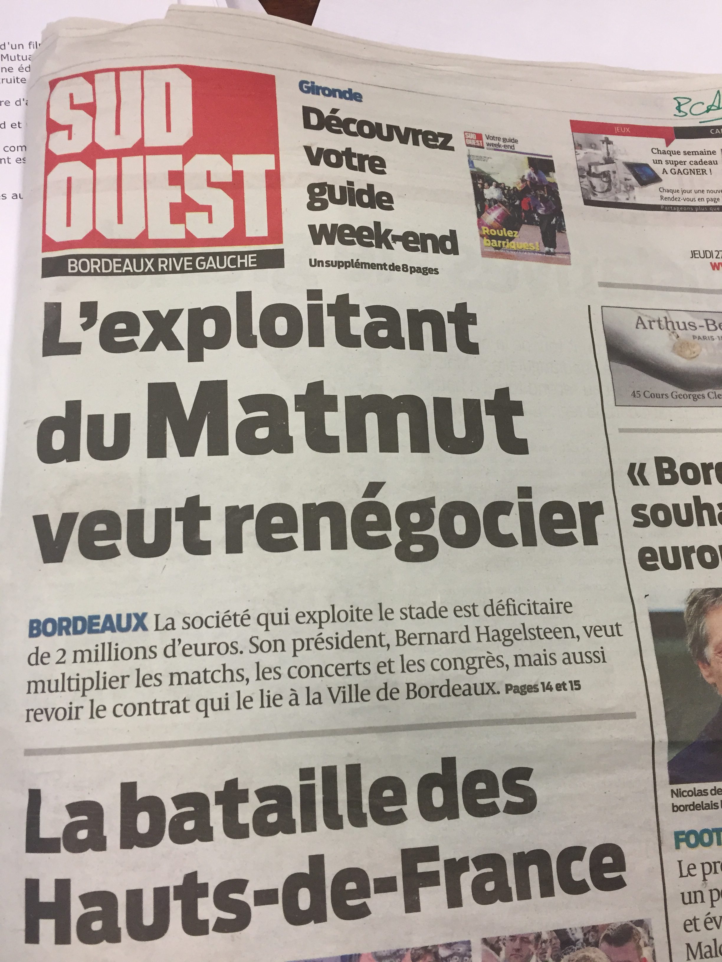 Dans l’édition de Sudouest de ce jour, nous apprenons que Société Bordeaux Atlantique (SBA), l’entreprise qui a construit et qui exploite le Grand Stade de Bordeaux, en déficit cette année de 2